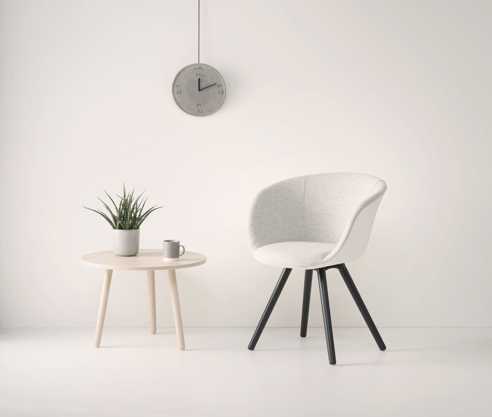 The table range Skeef has characteristic angled legs. Instantly creating a sturdy base. Skeef is fitted with wooden legs. The table top has subtle, rounded corners. The Skeef side table is available