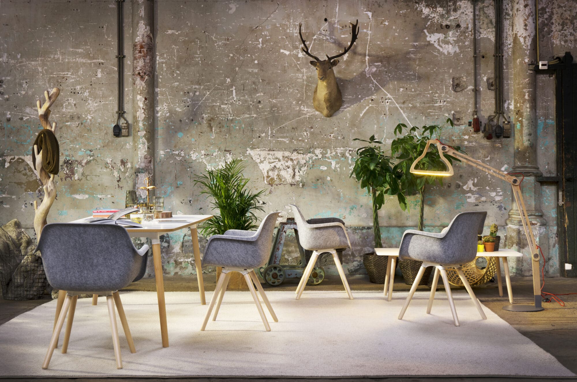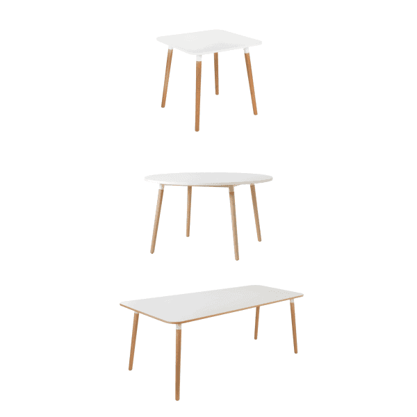 The table range Skeef has characteristic angled legs. Instantly creating a sturdy base. Skeef is fitted with wooden legs. The table top has subtle, rounded corners. The Skeef side table is available