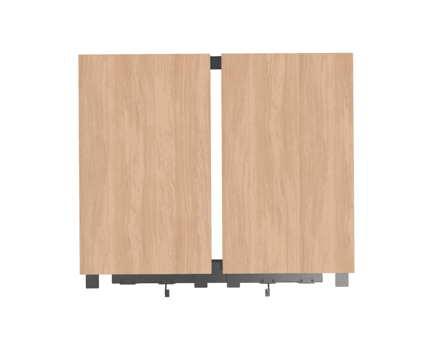 Cable management trays hook onto the back-to-back bench desk frames and hinge down for easy access making installation quicker and reconfiguration simpler.