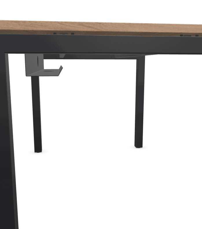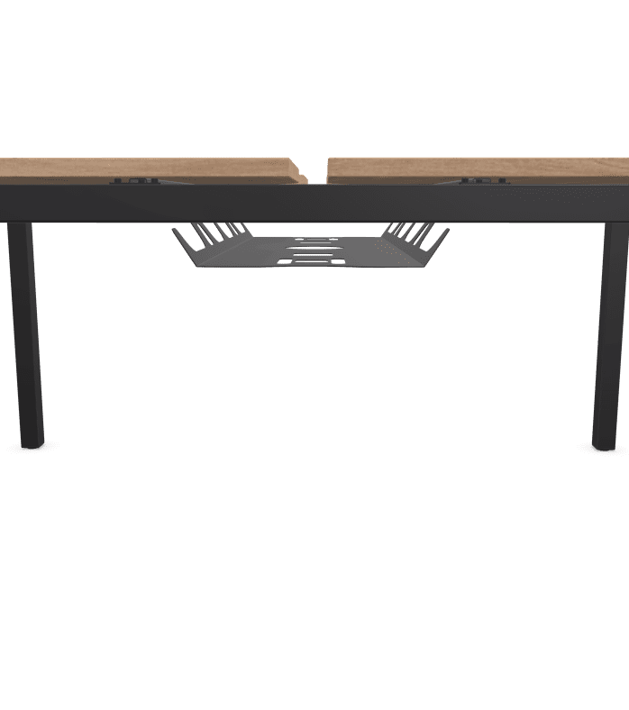 Cable management trays hook onto the back-to-back bench desk frames and hinge down for easy access making installation quicker and reconfiguration simpler.