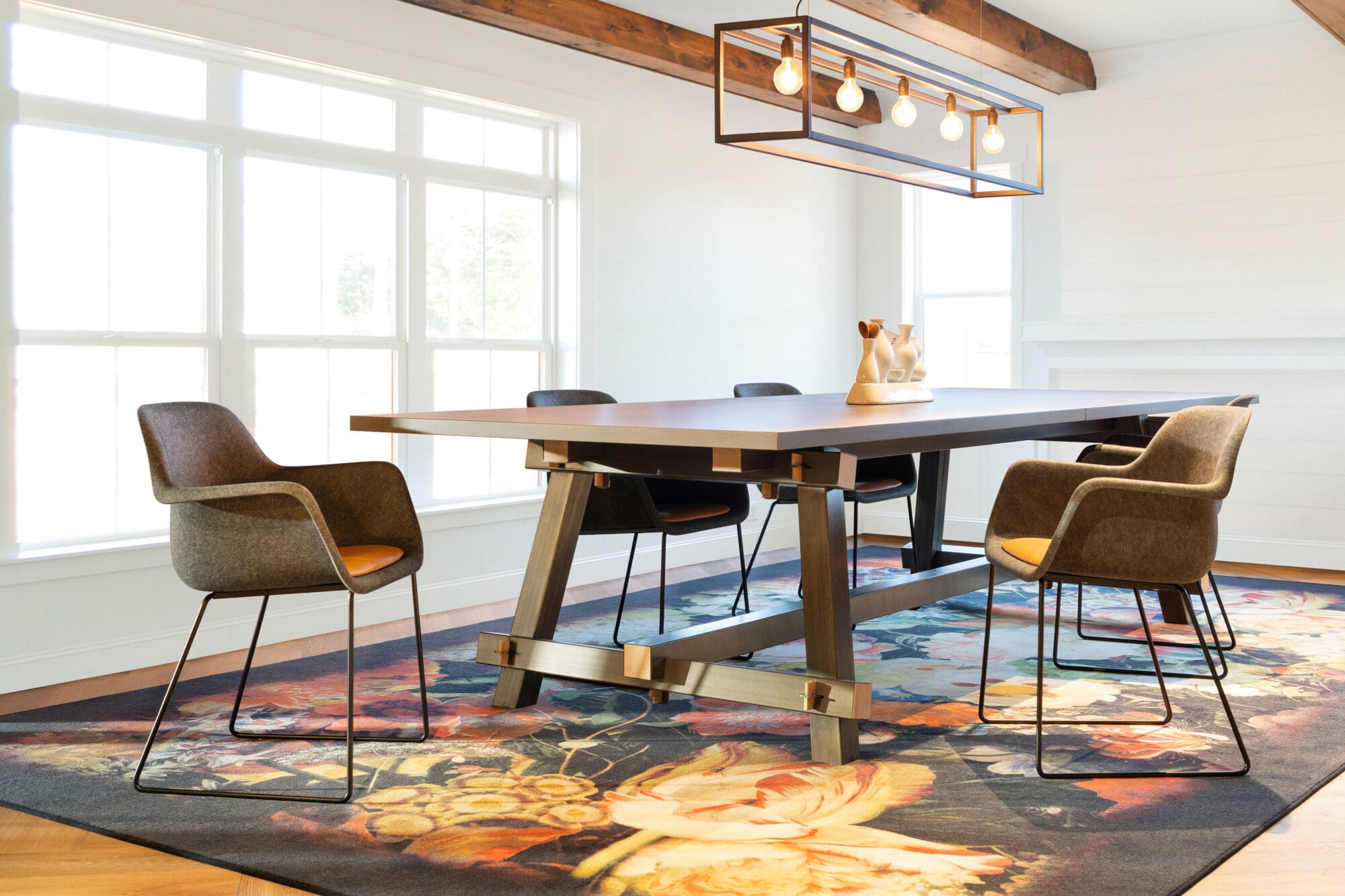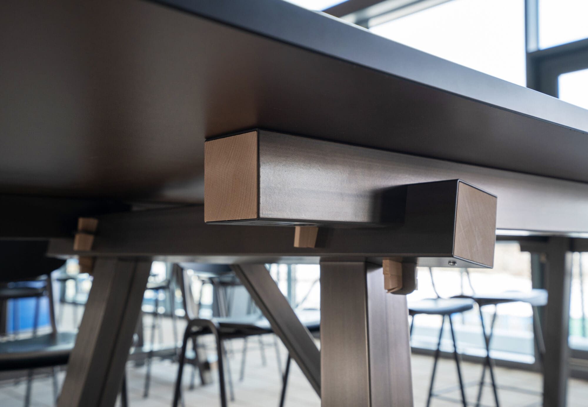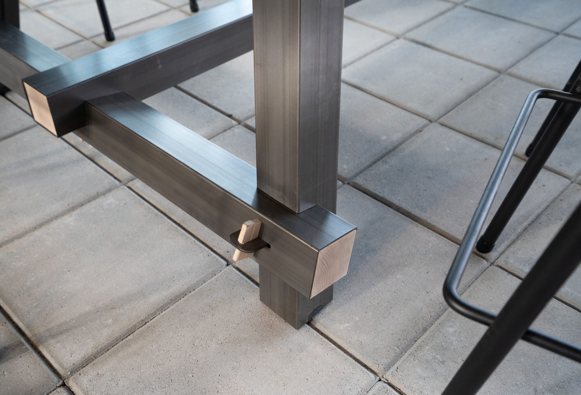 A sturdy, steel table made with traditional carpentry methods….that must be something else!
