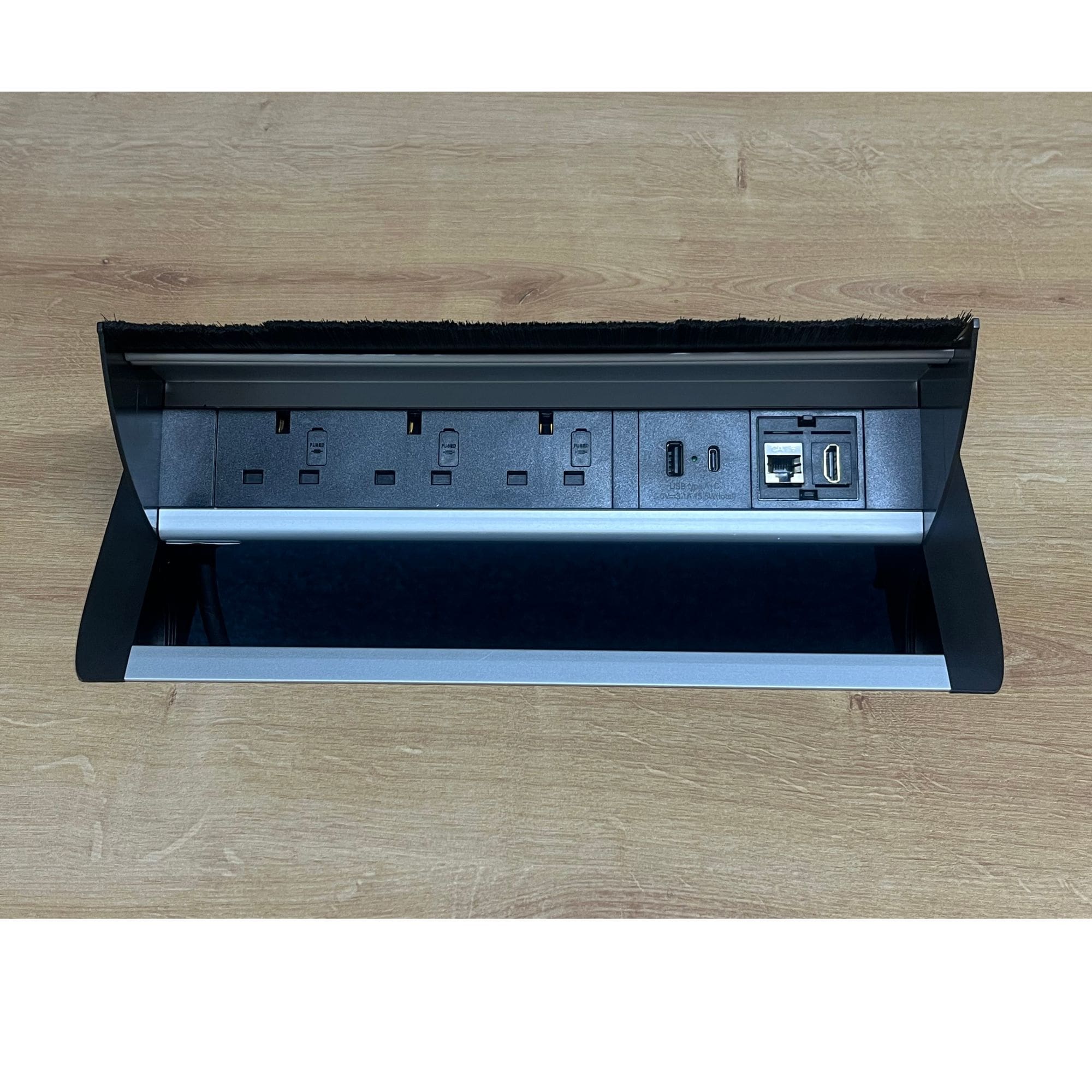 - Flip-up In-desk Power Extension w/ 2 x UK Sockets (3.15A, Ø5x20mm fuse).