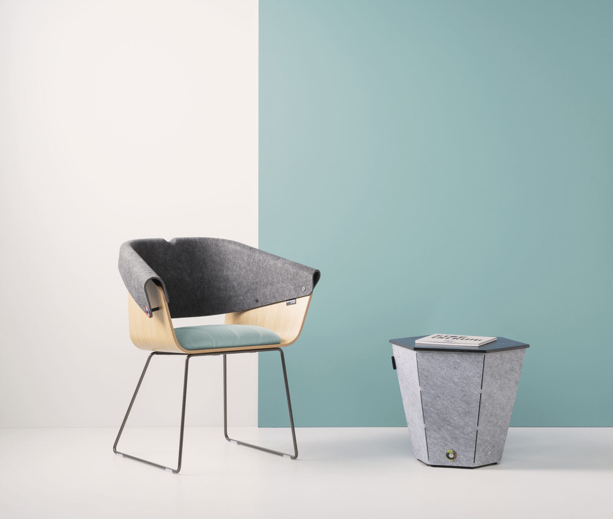 - Seat back: pressed and recycled PET felt dark grey