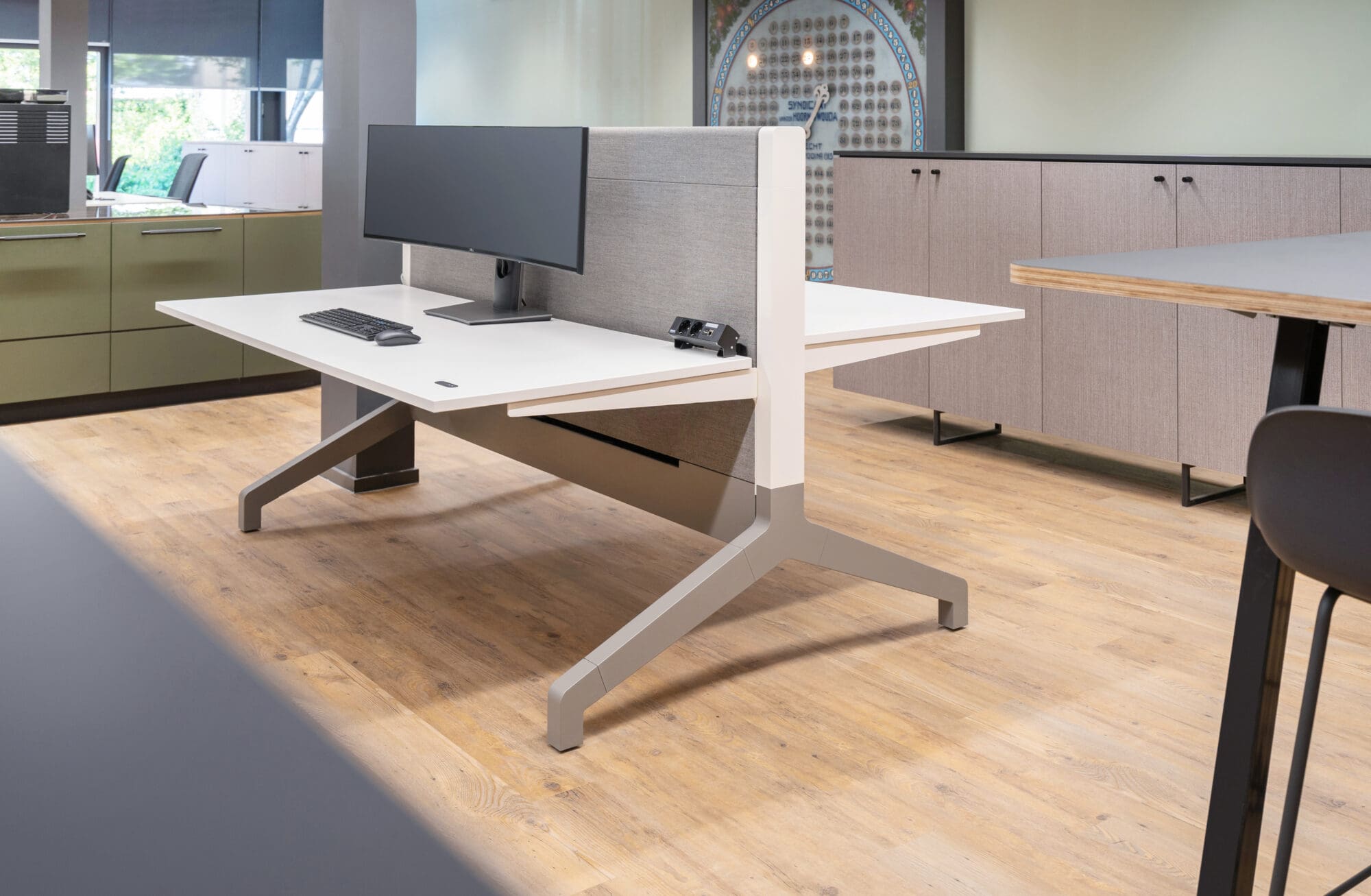 Sit, stand, flex, scrum… today’s workstation is dynamic and lets you vary your working posture. Ypsilon was developed and built from the ground up. The Y-support is the definition of versatility: you work on Ypsilon individually, as a duo or in teams. In addition, an endless variety of finishes is available, ensuring that Ypsilon fits into any interior.